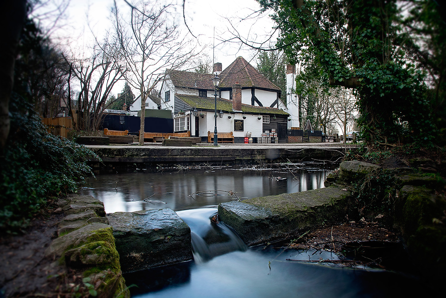 Set beside a gently flowing stream, The Fighting Cocks pub in St Albans offers a scene rich in character and quiet charm. The long exposure softens the movement of the water as it passes over the stones, while the historic building stands still among winter trees. This image captures a timeless corner of one of England’s oldest pubs, blending heritage, nature and calm atmosphere.